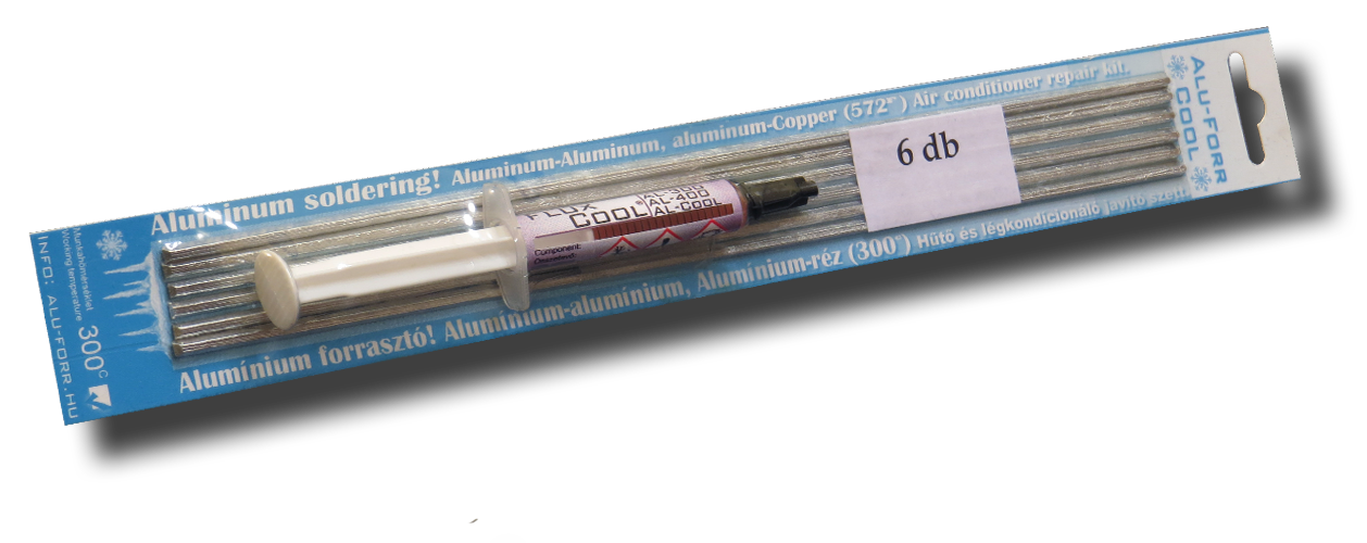 Az AL-300F típusú alumínium forrasztóanyag a csomagoláson belül található FluxCool nevű folyatószerrel bővült ki. (F-jelölés)
