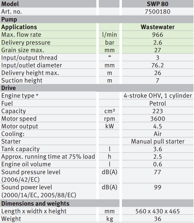 A tavak lecsapolásához, pincék kiszivattyúzása, pl. Árvizek vagy medrek kiöntése esetén.