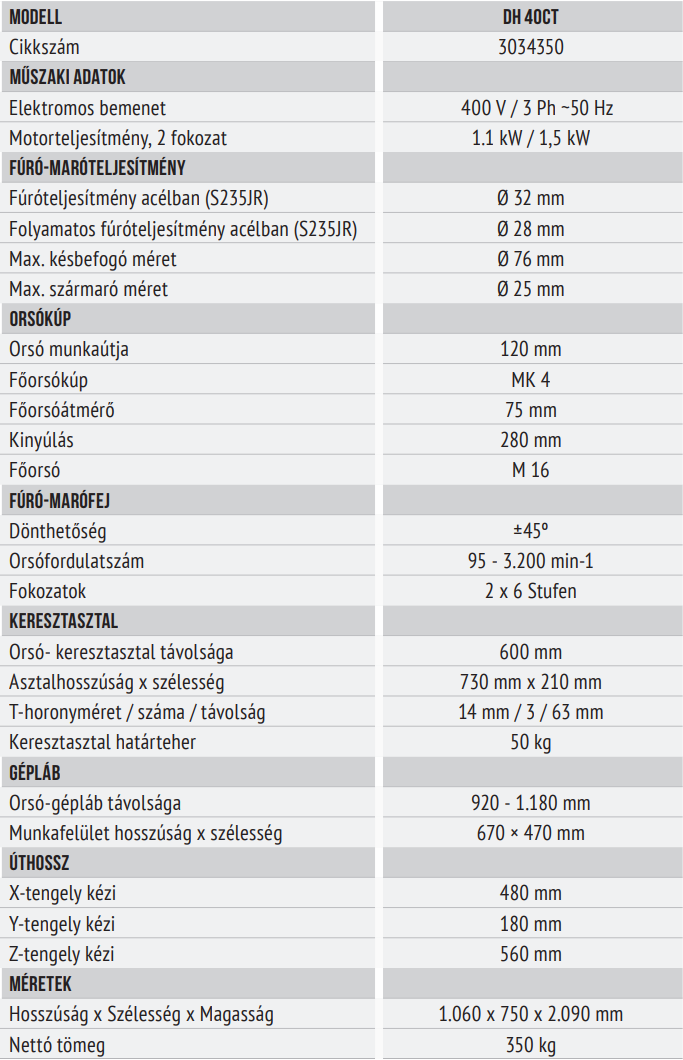 - A fúrófej és az asztal magassága is állítható, elfordítható.