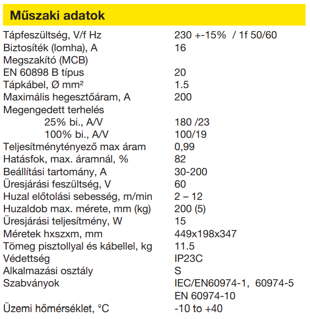 3m-es pisztoly, 3m hálózati kábel csatlakozóval, 4,5m gáztömlő szerelvényekkel, testkábel csatlakozókkal, egyszerű vállszíj, kopó alkatrészekkel felszerelt pisztoly (0,8mm-es huzalhoz)