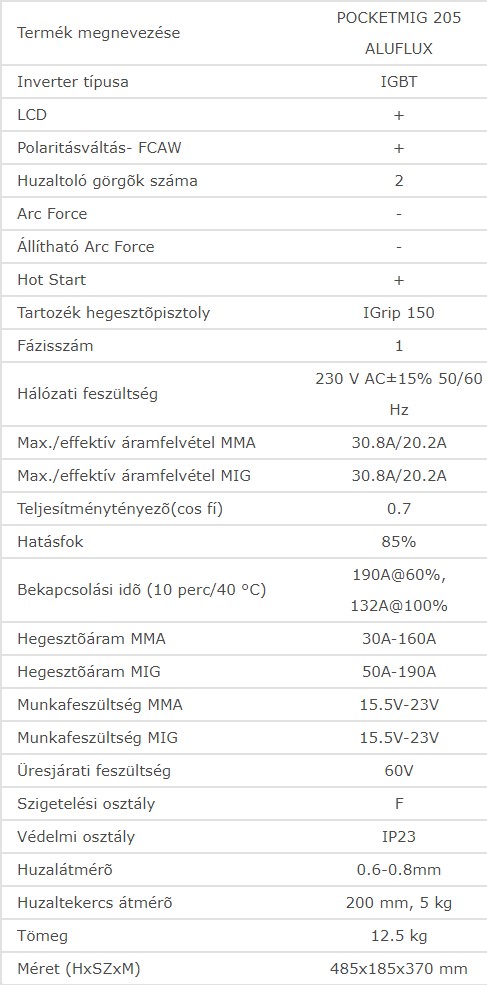 A POCKETMIG 205 ALUFLUX néven bevezetésre kerülő új hegesztőgép, teljesítmény, megjelenés és szolgáltatások tekintetében is előrelépés az előd modellhez képest.