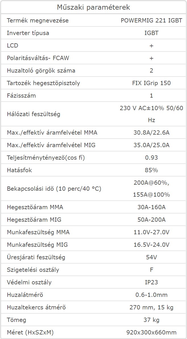 A gép nem csak ennyi, az új tervezésű elektronika a megszokottnál jobb hatékonysággal egy egészen új technológiát követ. A lágy kapcsolású IGBT alkatrészek kevesebb energiát fogyasztanak, hosszabb és erőteljesebb működést tesznek lehetővé.