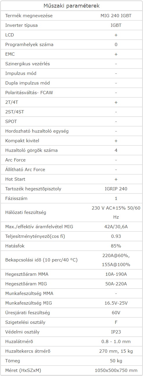 Magas minőségű IGBT tranzisztor technológia és áramszabályozás, amitől a gép stabil, megbízható és nagy bekapcsolási idővel folyamatosan magas teljesítményre képes. CO2 védőgázas fogyóelektródás és bevont elektródás hegesztési módok választhatók