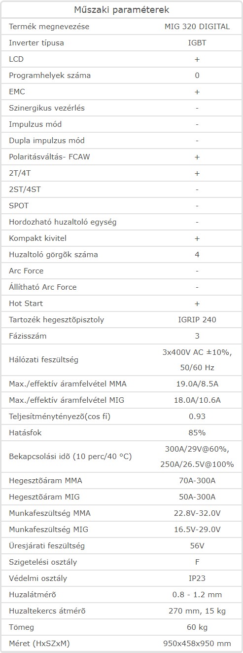 A magas minőségű IGBT inverter technológia garantálja a megbízható és gazdaságos működést.