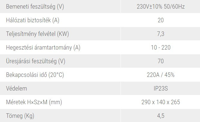 - VRD FUNKCIÓ (Voltage Reduction Device) az Üresjárati feszültséget korlátozó biztonsági funkció MMA üzemmódban történő hegesztés esetén, magas páratartalmú (nedves) környezetben