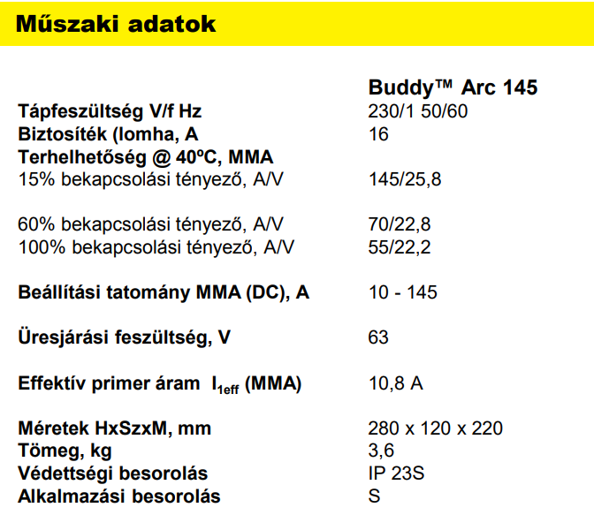 A Buddy™ Arc 145 egy robusztus és tartós áramforrás hivatásos hegesztő számára. A gép korszerű hegesztési tulajdonságait és megbízhatóságát a legújabb IGBT technológia biztosítja.