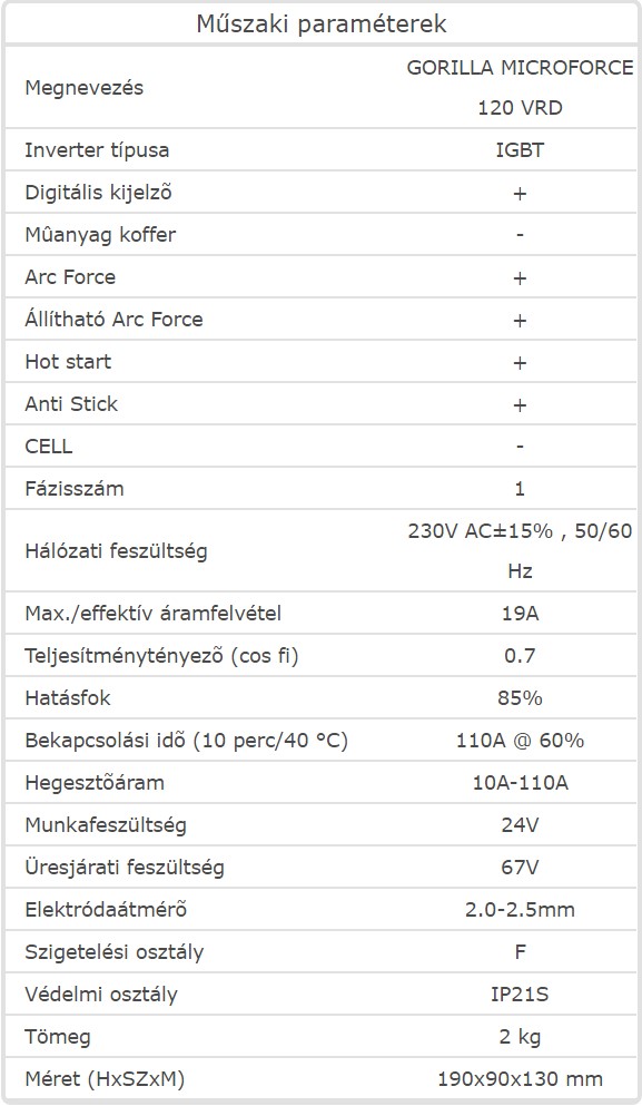 IGBT technológiás, bevont-elektródás hegesztő inverter VRD funkcióval, hobby és kisipari hegesztési feladatok elvégzéséhez.