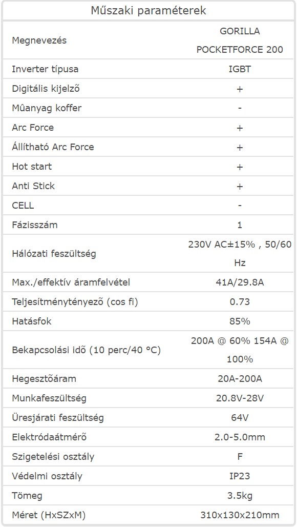 IGBT technológiás, bevont-elektródás hegesztő inverter, kisipari hegesztési feladatok elvégzéséhez.