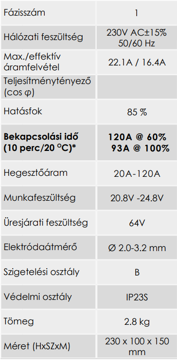 IGBT technológiás, bevont-elektródás hegesztő inverter, kisipari hegesztési feladatok elvégzéséhez.