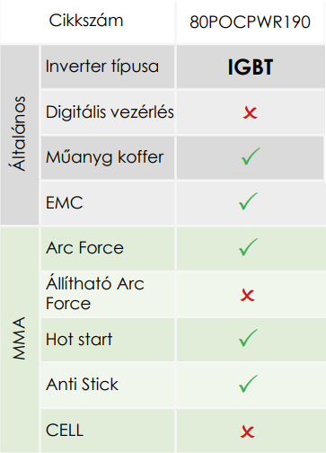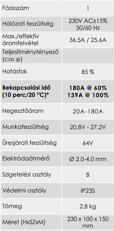 IGBT technológiás, bevont-elektródás hegesztő inverter, kisipari hegesztési feladatok elvégzéséhez.