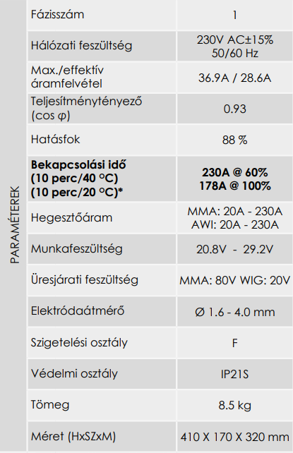 - Rutilos és bázikus elektróda alkalmazásával, ötvözetlen és ötvözött acélok, szürke-öntvény, lágyvas, alumínium, bronz, CrNi és további ötvözetek hegesztésére.