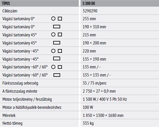 • Szállításkor Bi-metál fűrészszalaggal szerelve.