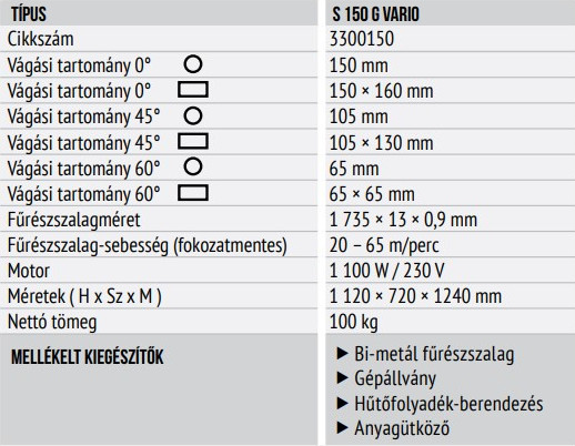 - Bi-Metál szériakivitelben kiváló minőségű fűrészszalaggal szerelve