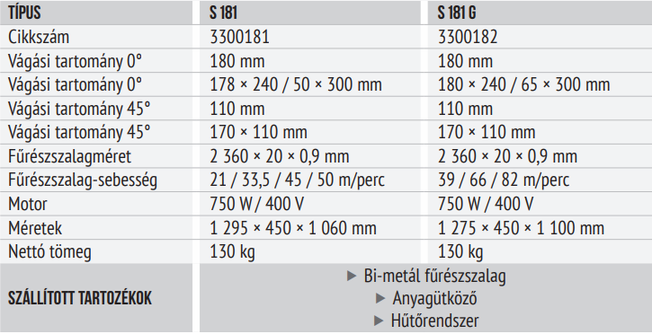 - Bi-Metál szériakivitelben kiváló minőségű fűrészszalaggal szerelve