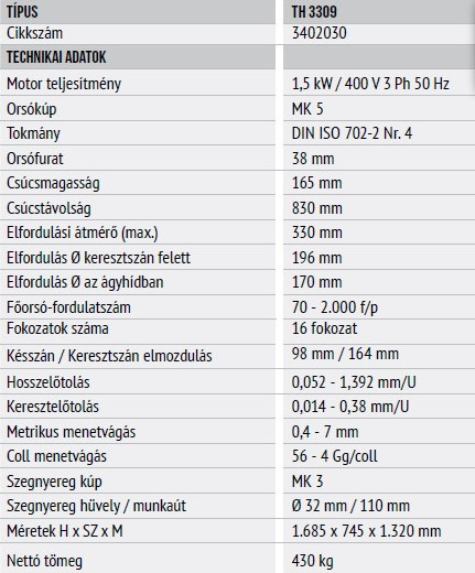 • A főorsó garantált körfutási pontossága kisebb mint 0,009 mm