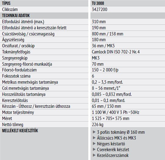 • Vezérorsó menetvágáshoz vagy automatikus hosszesztergáláshoz