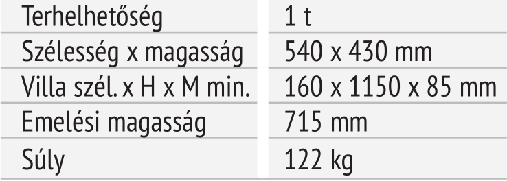 Gyorsemelő funkció 800 mm -es villamagasságig.