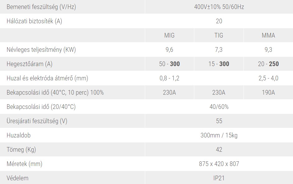 - 3 AZ 1-BEN funkcióval ellátott NAGYTELJESÍTMÉNYŰ IGBT inverteres hegesztőgép MIG/MAG (CO), AWI (TIG), MMA (bevontelektródás)