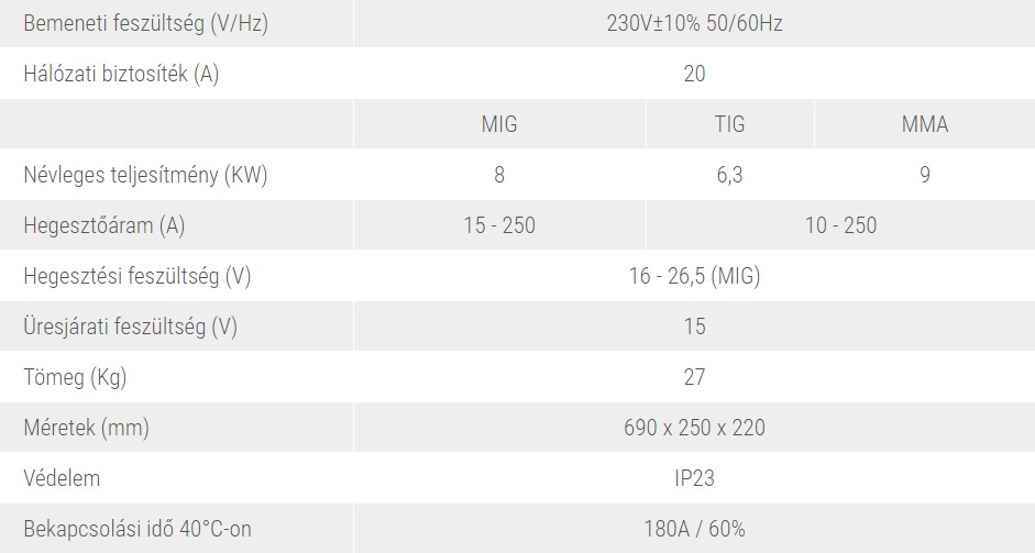 - Bevontelektródás (MMA) hegesztés állítható Arc Force és Hot Start funkciókkal