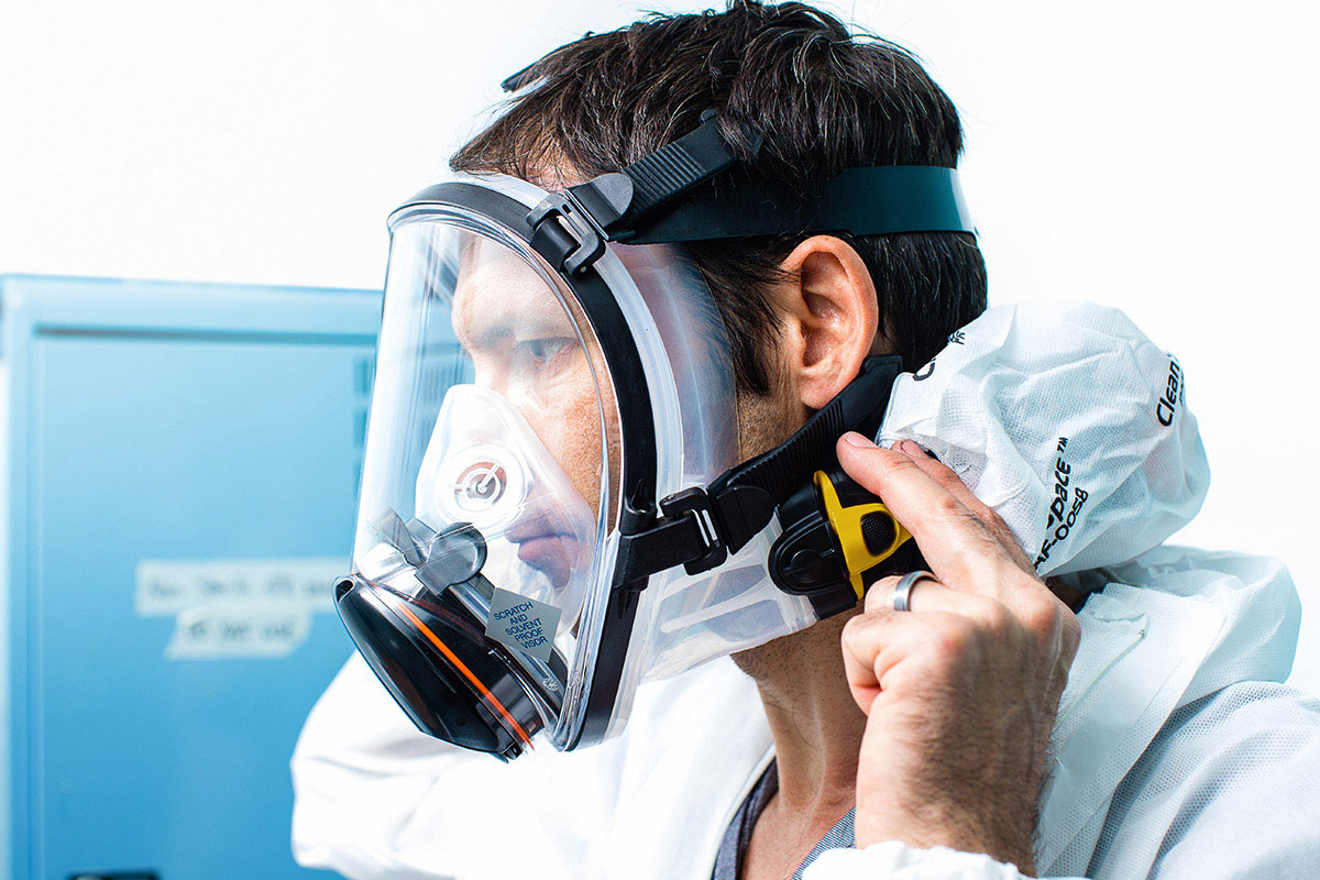 - Légzés- és látásvédelemmel.