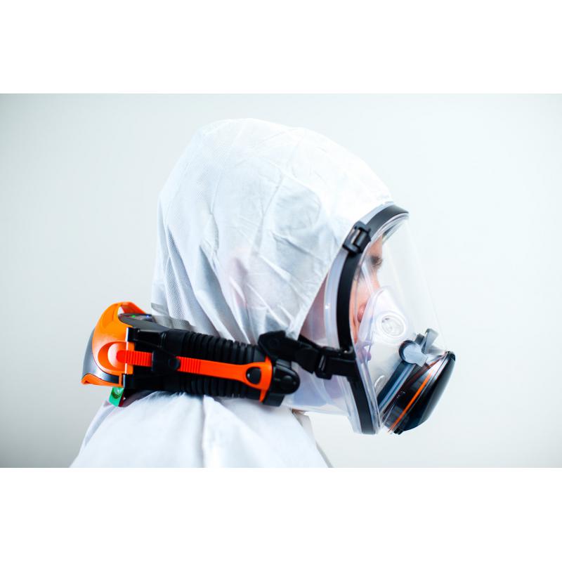 - Teljes álarcos változat különösen magas expozicióhoz, biológiai veszélyhez, mérgekhez.