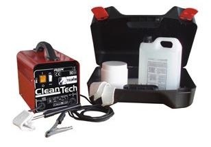 Telwin CleanTech 100: gyors megoldás a rozsdamentes varratok hőfutási nyomainak eltüntetésére homályos foltok, bemaródás nélkül. Gyors, környezet kímélő megoldás, egyszerű használat, akár helyszíni szerelésnél is. TIG, MIG hegesztések befejezéseként, újra színtelenné és fényessé teheti a varrat felületét és környezetét. A készülék 230V-ról, kis áramfelvételű, kézi elektródával működik. A gép tartozéka a tisztítószert és kellékeket tartalmazó koffer. A tisztító folyadék külön is rendelhető.