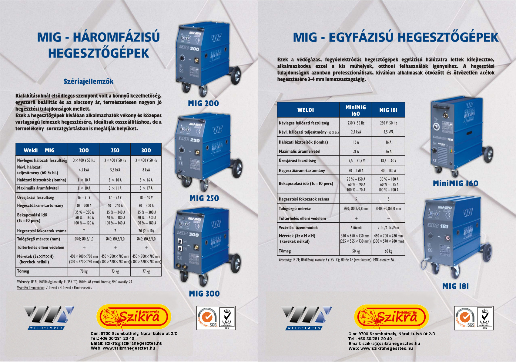 Egy-, háromfázisú MIG hegesztőgépek: