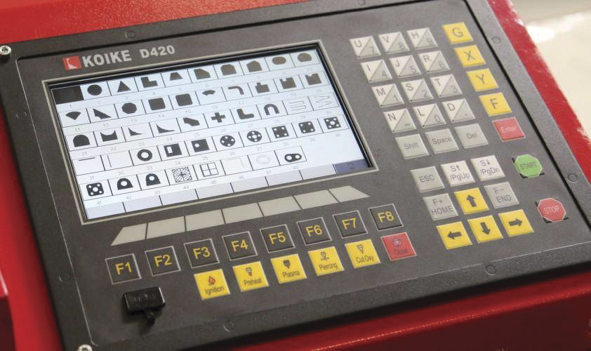 A KOIKE saját fejlesztésű D420-as vezérlése a legújabb hordozható CNC vezérlési technológiákat tartalmazza, úgymint automatikus átlyukasztási programot, tükörvágást, szögbeállítást, illesztést, forgatást, és még számos egyéb funkciót. Az aktuális vágási folyamat és a különböző beállítások a vezérlésen elhelyezett 7 colos színes LCD kijelzőn követhetők nyomon. A képernyűmenű és a funkciógombok segítségével gyorsan beállíthatóvá válik a legbonyolultabb feladat is.