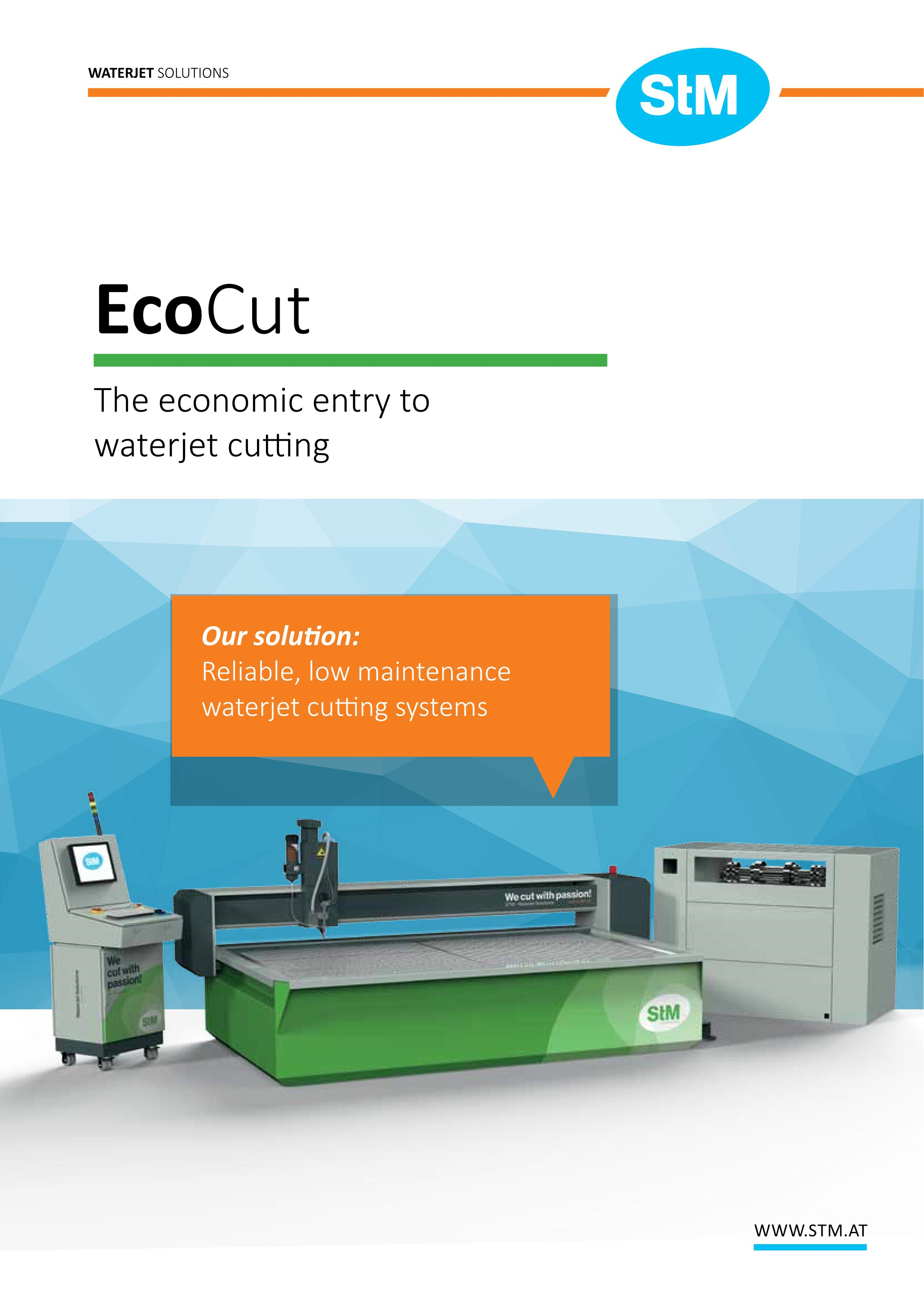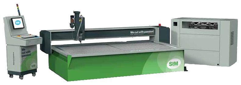 Az STM EcoCut vízsugaras vágórendszereket úgy tervezték, hogy tiszta vízzel, valamint csiszolóanyaggal is működjenek. A vágási folyamat során a vizet legfeljebb 6 000 bar nyomással fúvókán keresztül préselik, ami óriási sebességet eredményez (a hangsebesség két-háromszorosa).
