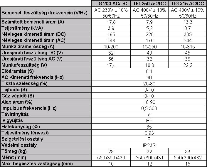 Kiváló hegesztési tulajdonságok: 5 Amperes áramerősségtől már használható vékony lemez hegesztésre. Állítható felfutási- és lefutási idők, pulzálási frekvencia, csúcs áram és bázis áram erősség, beállított paraméterek memória tárolása,stb...