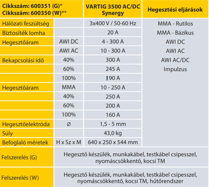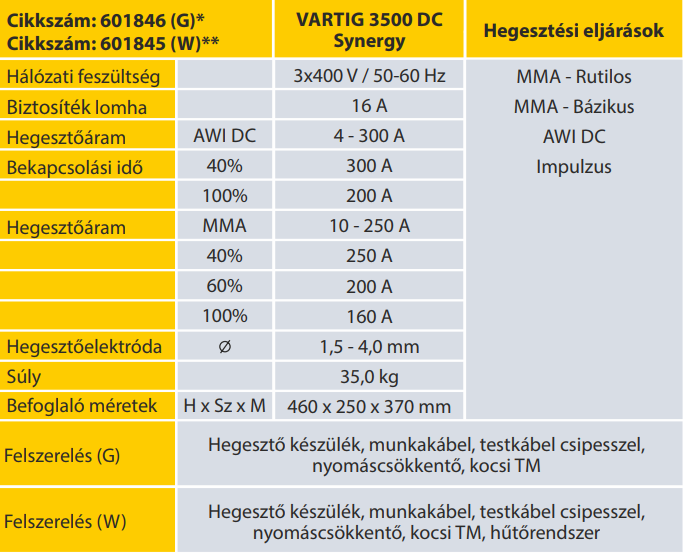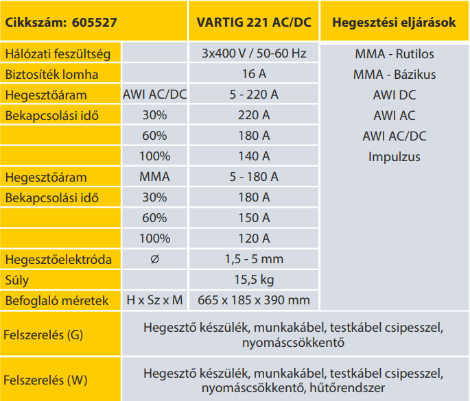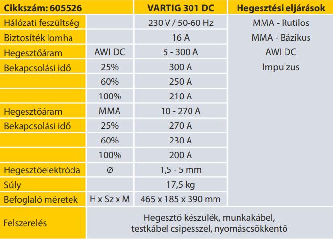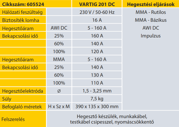 A Vartig áramforrások alkalmasak AWI illetve bevont elektródával (MMA) történő hegesztésre. Megújult innovatív kezelőpanel, amely lehetővé teszi a hegesztési paraméterek digitális beállítását és a LED kijelzőkkel nyomonkövethető a teljes hegesztési folyamat. A gépcsalád nagyon széles felhasználhatósága miatt jól alkalmazható a javító műhelyektől az iparig. Szerkezeti, rozsdamentes acél és alumínium (AC/DC) minőségi hegesztésére ajánljuk.