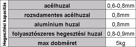 Képes alacsony áramerősségre (50 A) így vékony anyagok is hegeszthetők vele.