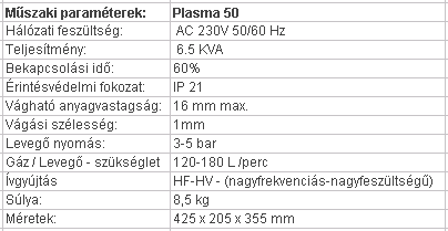 50 Amperes plazmavágó készülék, 16mm-ig