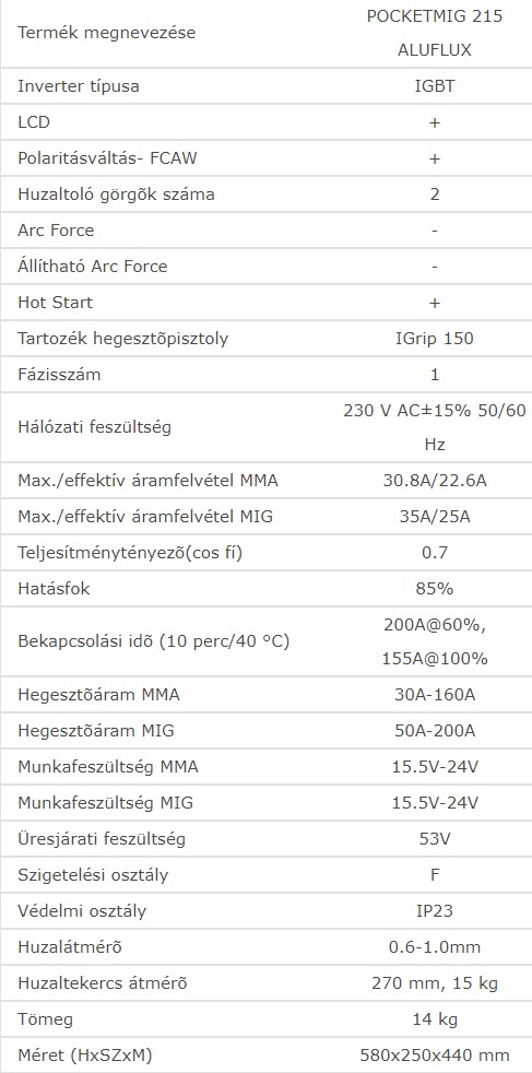 • Termékeink Hegesztőgépek MIG MAG IWeld Gorilla PocketMig 215 ALUFLUX