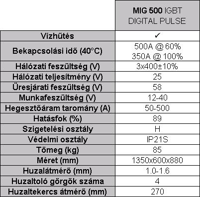 A MIG 500 IGBT DIGITAL PULSE szinergikus, digitális vezérlésű, IGBT technológiás, MIG impulzus-hegesztő inverter.