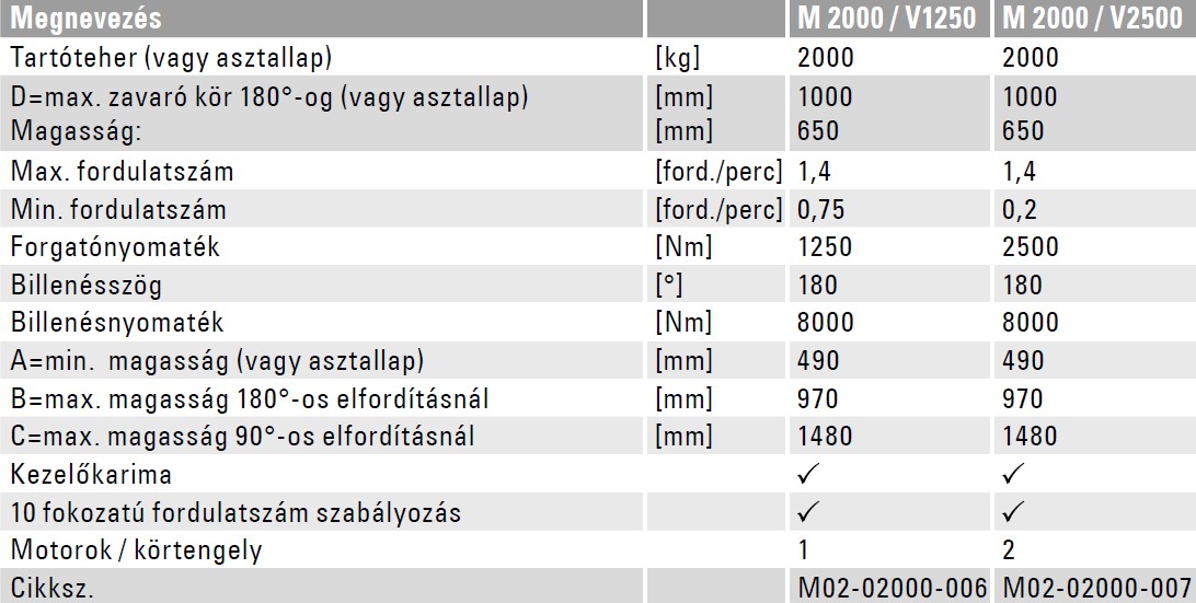 Max. fordulatszám: 2 ford./perc
