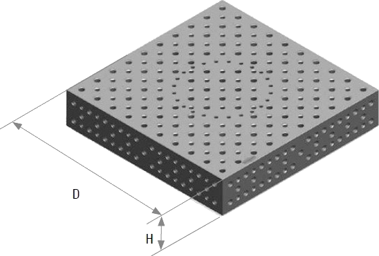 D28-as rendszerfuratok 100x100mm-es rácsban és