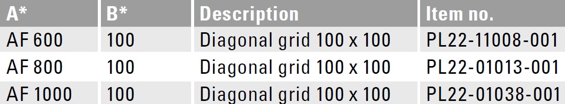 D22-as rendszerfuratok 100x100mm-es rácsban és