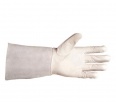 Fehér színű, puha, szín báránybőr hegesztőkesztyű, pontos AVI hegesztést lehetővé tevő prémium minőségben, 15 cm-es marhahasíték mandzsettával, 10-es méretben, CE megfelelőséggel.