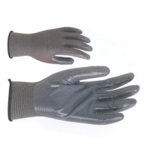 100% poliamid szálból kötött rugalmas, szürke színű kesztyű, gumírozott, rugalmas mandzsettával, szellőző kézháttal, nitrillel mártott tenyérrel 10-es méretben.