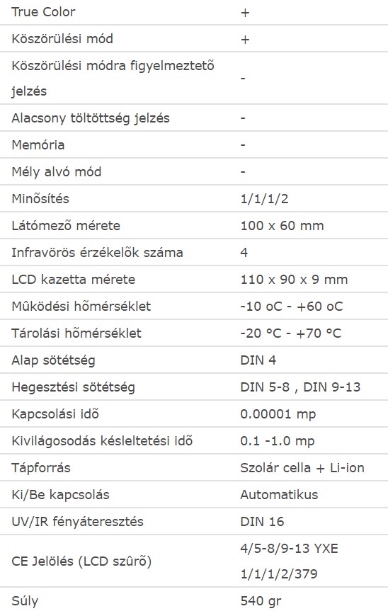 - Megfelelnek az MSZ-EN 379, EN 175 továbbá ANSI Z 87.1 munkavédelmi szabványnak.
