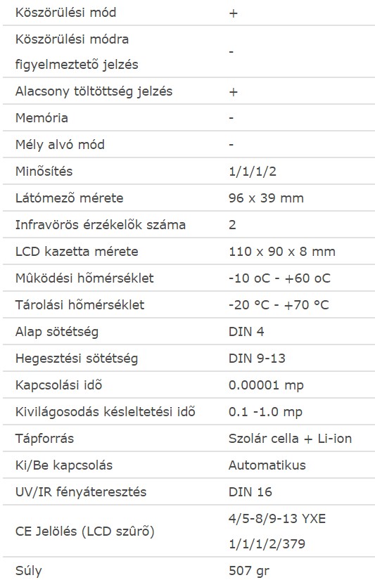 - Megfelelnek az MSZ-EN 379, EN 175 továbbá ANSI Z 87.1 munkavédelmi szabványnak.